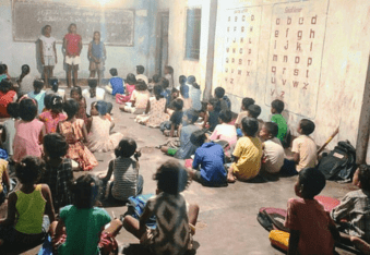 Providing non-formal education to children of river-bed stone-breaking families.